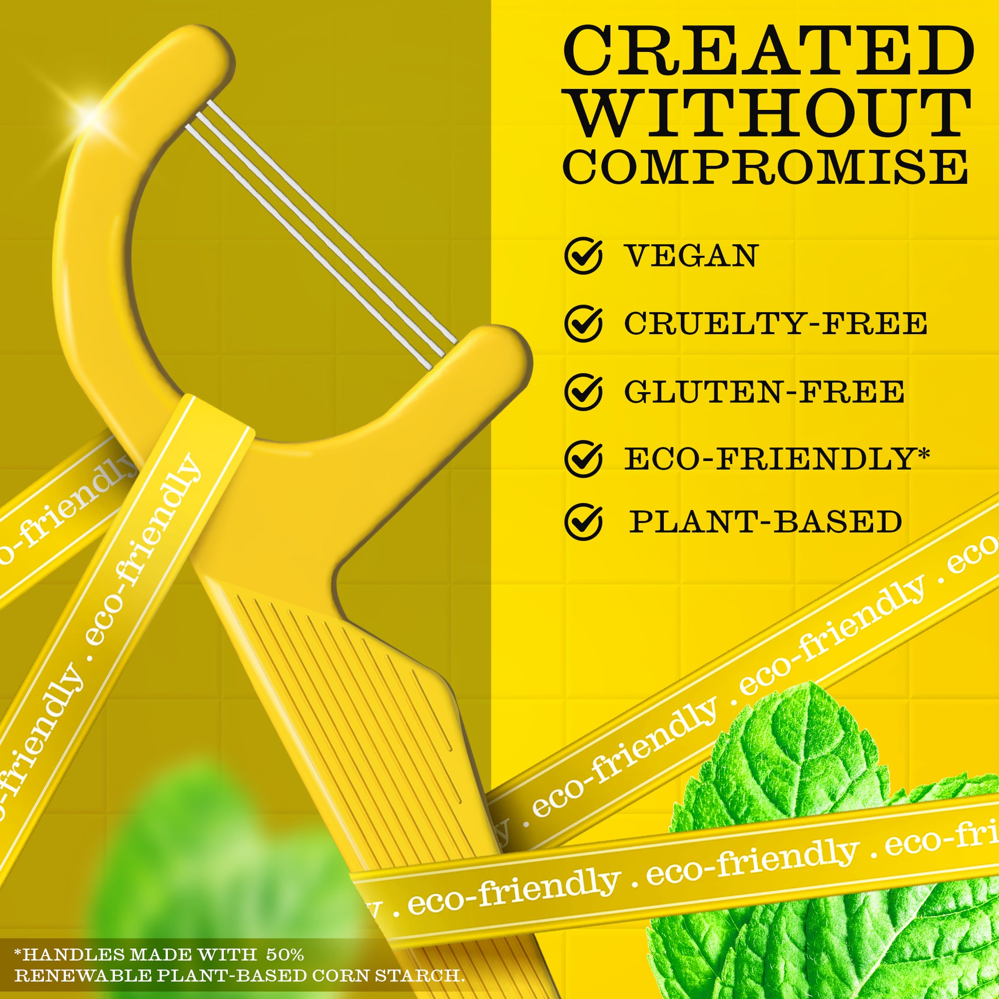 Eco-friendly, mint-infused floss picks with a triple-strand design that deliver a deeper clean and fresher smile—gentle on teeth, tough on plaque.