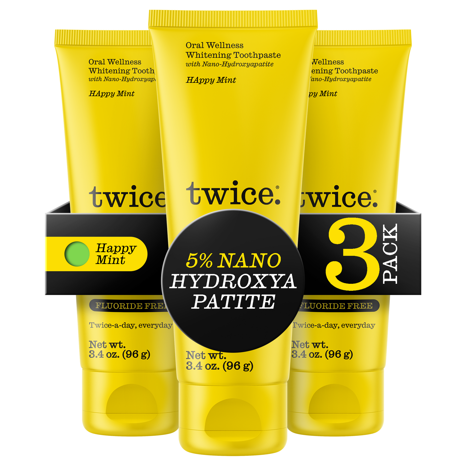 Happy Mint Whitening Toothpaste with 5% Nano-Hydoxapatite - Fluoride-Free & Peroxide-Free, 3.4 oz