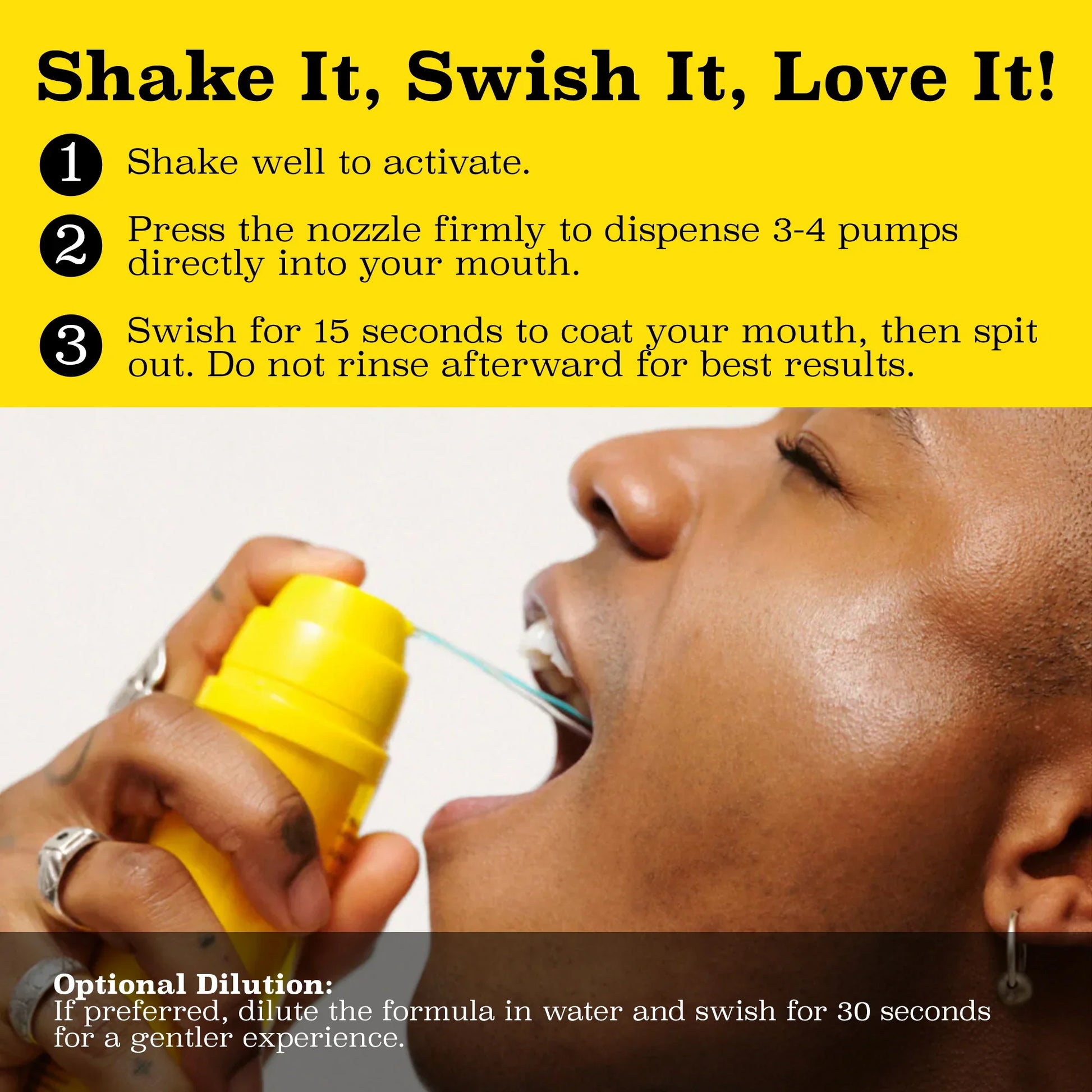 ✓ Easy-to-use—just shake, swish, and spit (no rinse required)