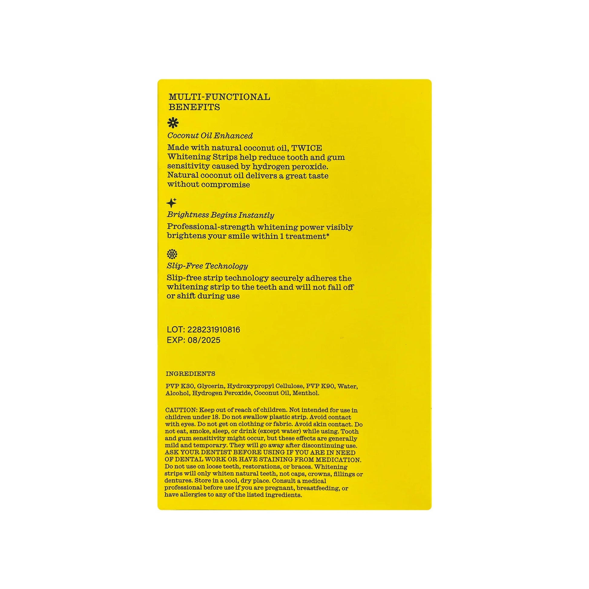 • PVP K30 – Helps create a flexible film for better adhesion of the whitening strip