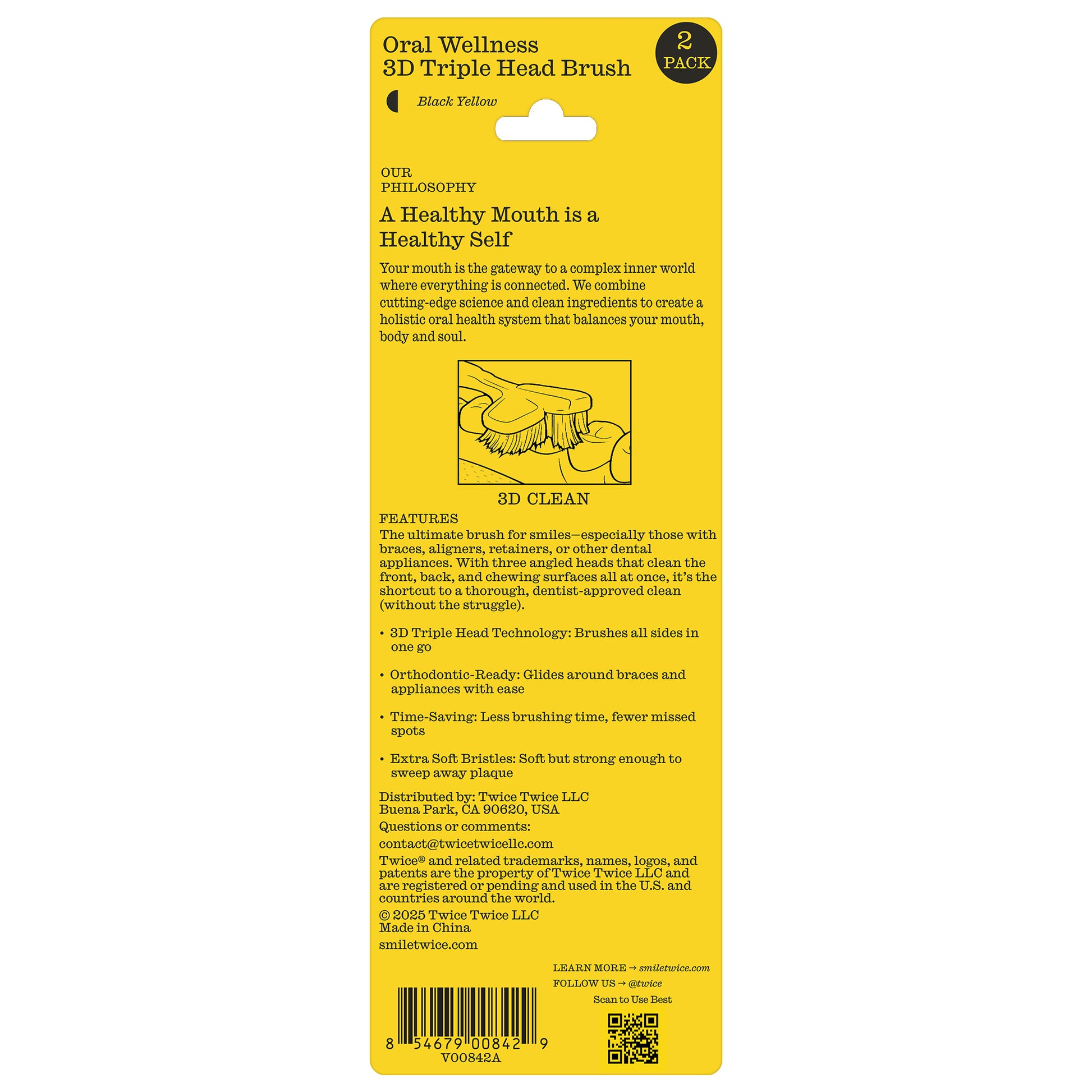 Soft Oral Wellness 3D Triple Head Toothbrushes, Gum Friendly, 2 Pack